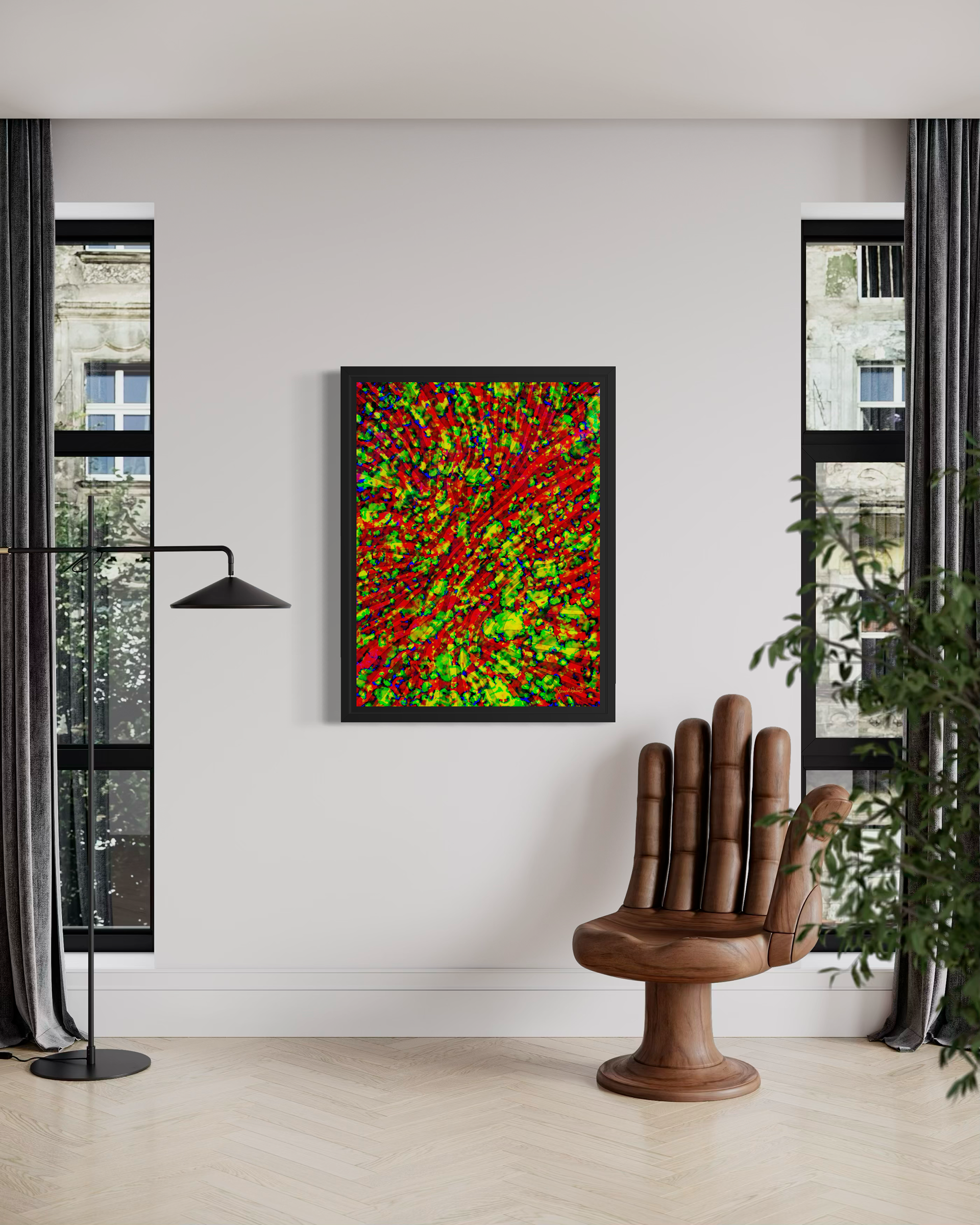 This piece can be printed on different support, such as fine art papers, acrylic, aluminium, etc. The high resolution also allows for printing different sizes.
